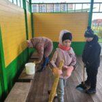 Вооружившись необходимым инвентарем, все дружно вышли на уборку территории. Сотрудники и воспитанники детского сада чистили участки от сухой травы, собирали семена цветов, очищали территорию от мусора, порыхлили многолетние растения и кустарники, подмели дорожки и тротуары.